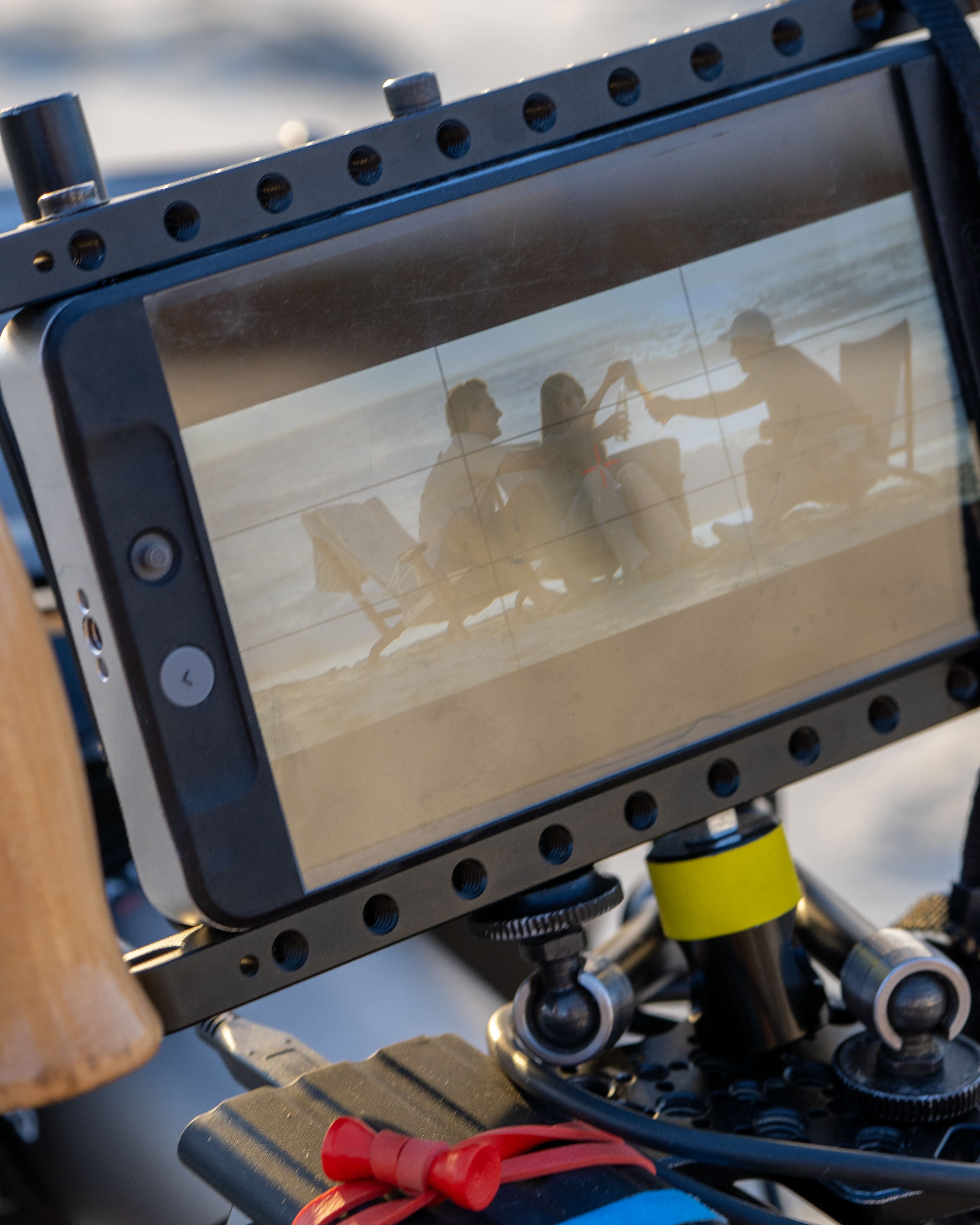 For further assistance, production used a tool called onion-skinning, which overlays the previous frame in translucent form onto the camera monitor. This allowed us to match chair placement, body position, and even prop angles frame-for-frame. Each shot followed the same choreography — fold the chair, sip a drink, reach to your left — wherever we went.