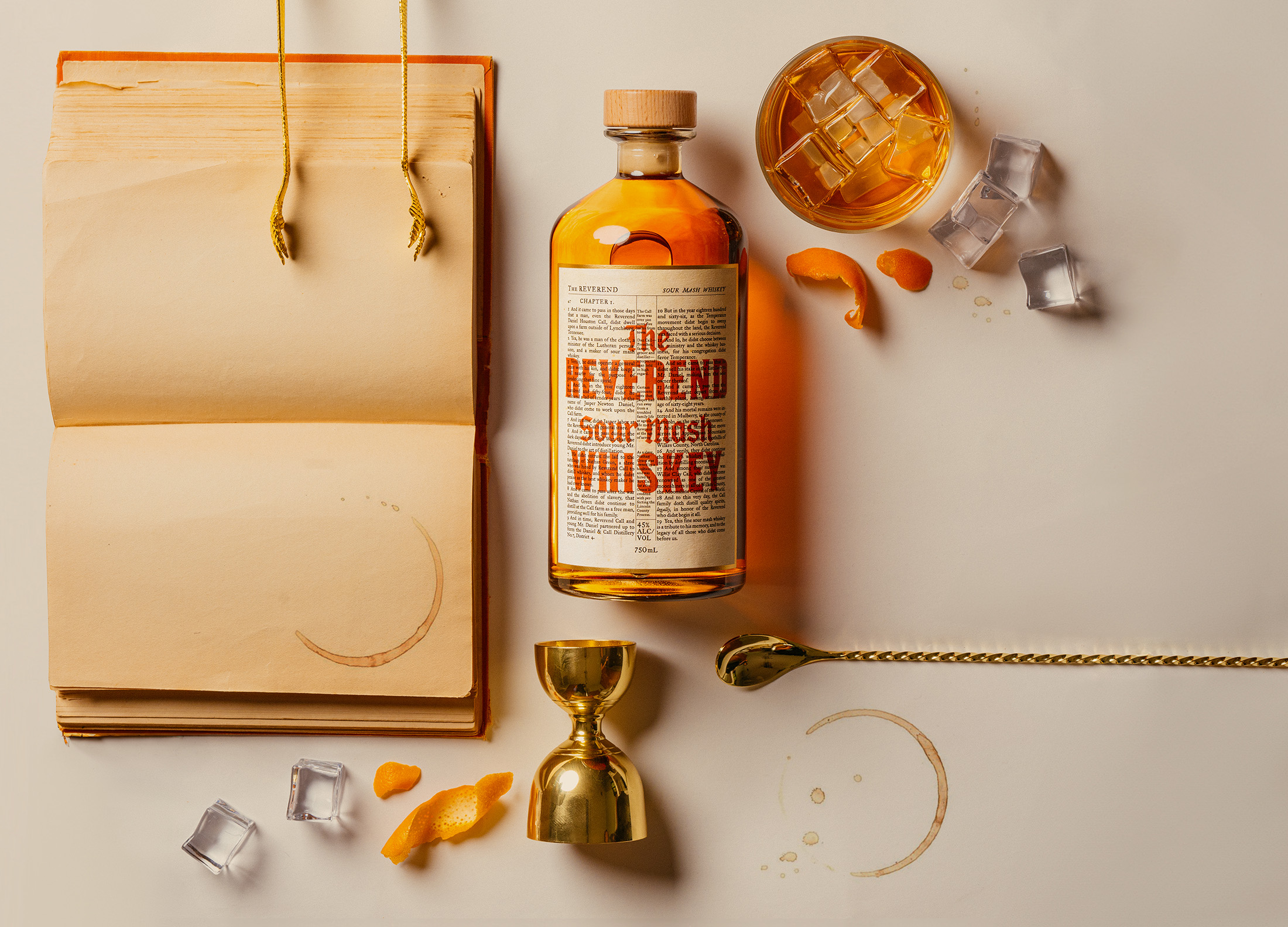 As B-A-R prepared to launch The Reverend Sour Mash Whiskey™, named for The Reverend Dan Call (who later sold his business to a young Jack Daniel), a new challenge appeared. It became clear that this brand needed to be celebrated as something new, even if its origin story is historic. We asked ourselves, “well, if we ditch the stereotypical ‘whiskey lineage’ angle, what is our new take?” Our answer came from The Reverend himself. As we researched The Reverend’s life, we lingered on the juncture when he was forced to give up his whiskey business because it kept him from his congregation. One phrase became our turning point: "there is a fine line between Saturday night and Sunday morning."
