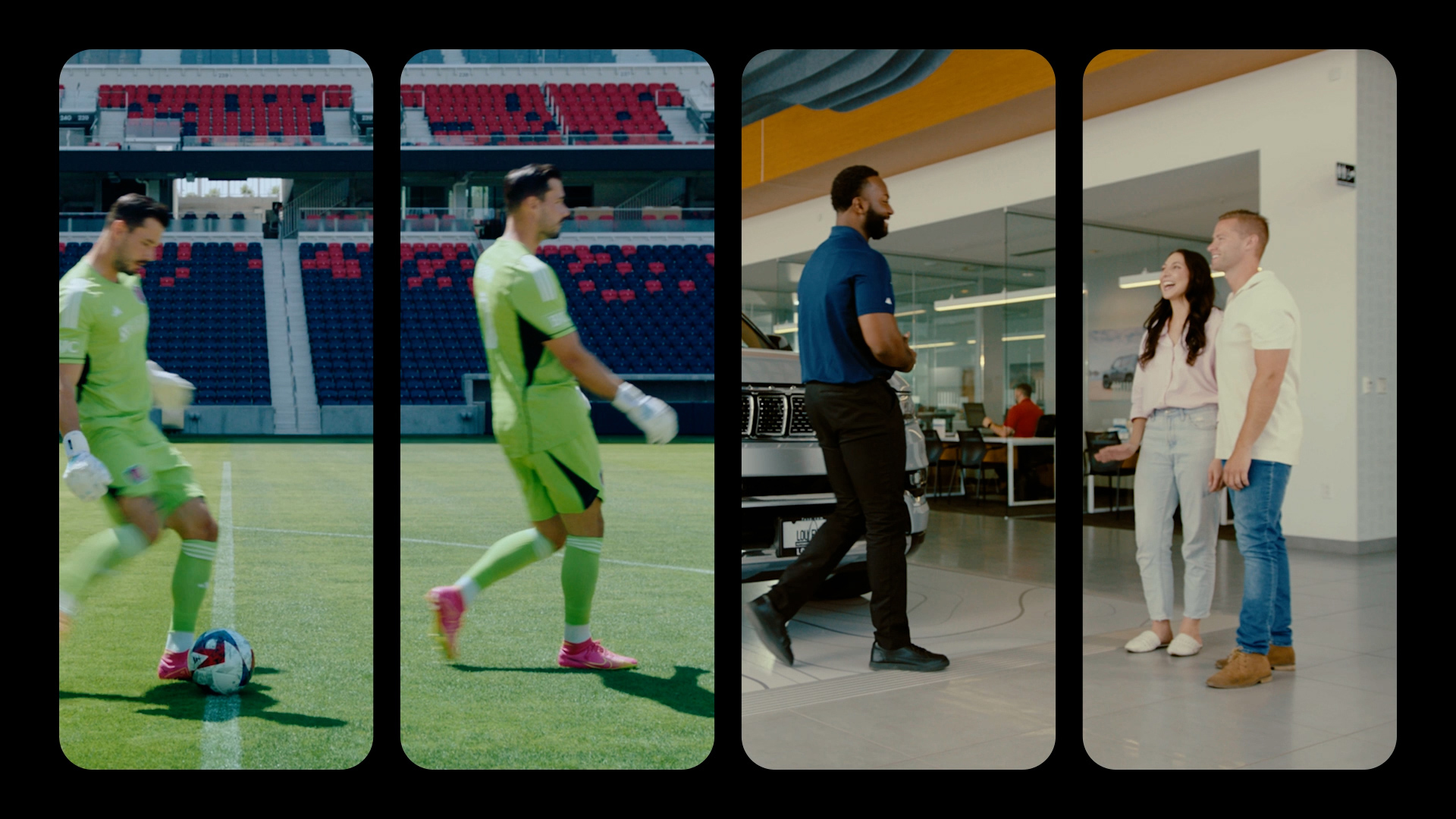 Lou Fusz Automotive and St. Louis CITY Soccer Club (SC) wanted to showcase the passion and dedication in each of their industries, tying seemingly unrelated businesses together. In developing our pitch, we demonstrated their similarities through visual parallels — split screen stories with characters crossing between frames and mirrored actions, punctuated by a diving-save from 2023 Allstate MLS Goalkeeper of the Year, Roman Bürki.