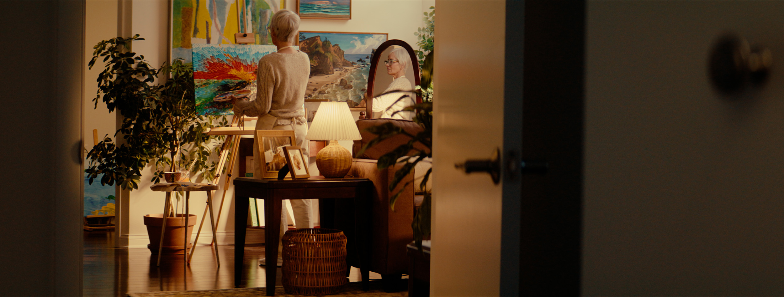 One resident, Patricia, was particularly excited to be part of the process. Patricia proudly shared that she was the second youngest resident and in charge of watering the property’s plants. When she learned about our story concept, she promptly invited us to see her apartment for reference. Little did we know, her apartment was decorated from floor to ceiling with paintings she had collected over her lifetime: a mix of landscapes, portraits, and abstract nudes, many of which were oddly draped in bath towels. “Most people assume the towels are for sun damage,” Patricia shared unprompted, “but it's really for the bird sh*t.” It wasn’t until then that we realized her room also sheltered loose birds. At that moment, Voltaire, Percival, and Beowulf (yes, those are three of the said birds) swooped over our heads, as if to prove a point. While we didn’t feature birds or protectant-towels in our narrative, hearing Patricia’s connection to art throughout her life impacted the way we told our story. Patricia even allowed us to borrow a few pieces from her personal collection to fill our hero character’s home.